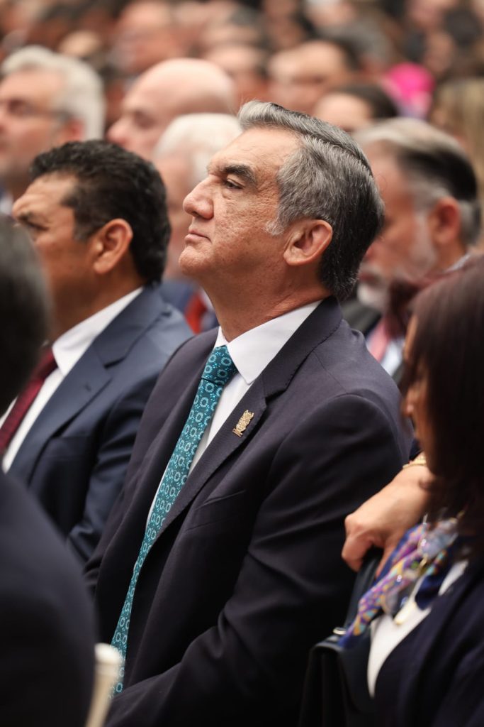 En el evento también se contó con la presencia del ministro presidente de la Suprema Corte de Justicia de la Nación, Hugo Aguilar Ortiz; la presidenta de la Mesa Directiva de la Cámara de Senadores, Laura Itzel Castillo Juárez; la secretaria de Gobernación, Rosa Icela Rodríguez Velázquez; el secretario de la Defensa Nacional, general Ricardo Trevilla Trejo; el secretario de Seguridad y Protección Ciudadana, Omar García Harfuch, y el secretario de Marina, almirante Raymundo Pedro Morales Ángeles, además del vicepresidente de la Mesa Directiva de la Cámara de Diputados, Sergio Gutiérrez Luna.