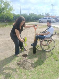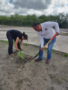 H. Matamoros, Tamaulipas.- Por instrucción del alcalde Beto Granados, y en el marco del Día de la Madre Tierra, la Secretaría de Medio Ambiente y la Secretaría de Bienestar Municipal encabezaron una campaña de reforestación en el Parque Central.