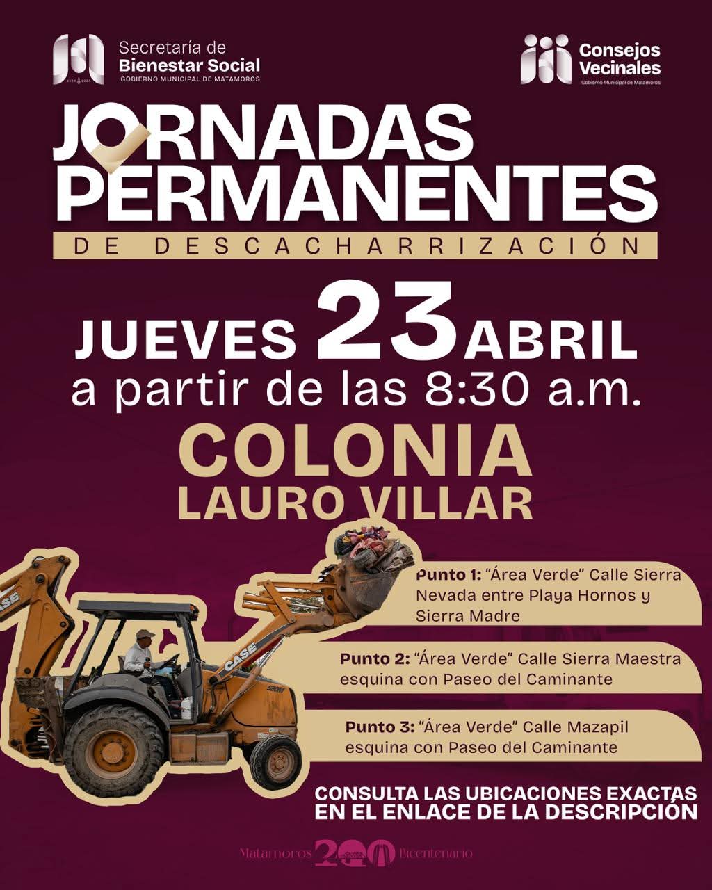 Con el objetivo de prevenir la proliferación de vectores y cuidar la salud de las familias, las Jornadas Permanentes de Descacharrización llegarán este jueves a la colonia Lauro Villar.
