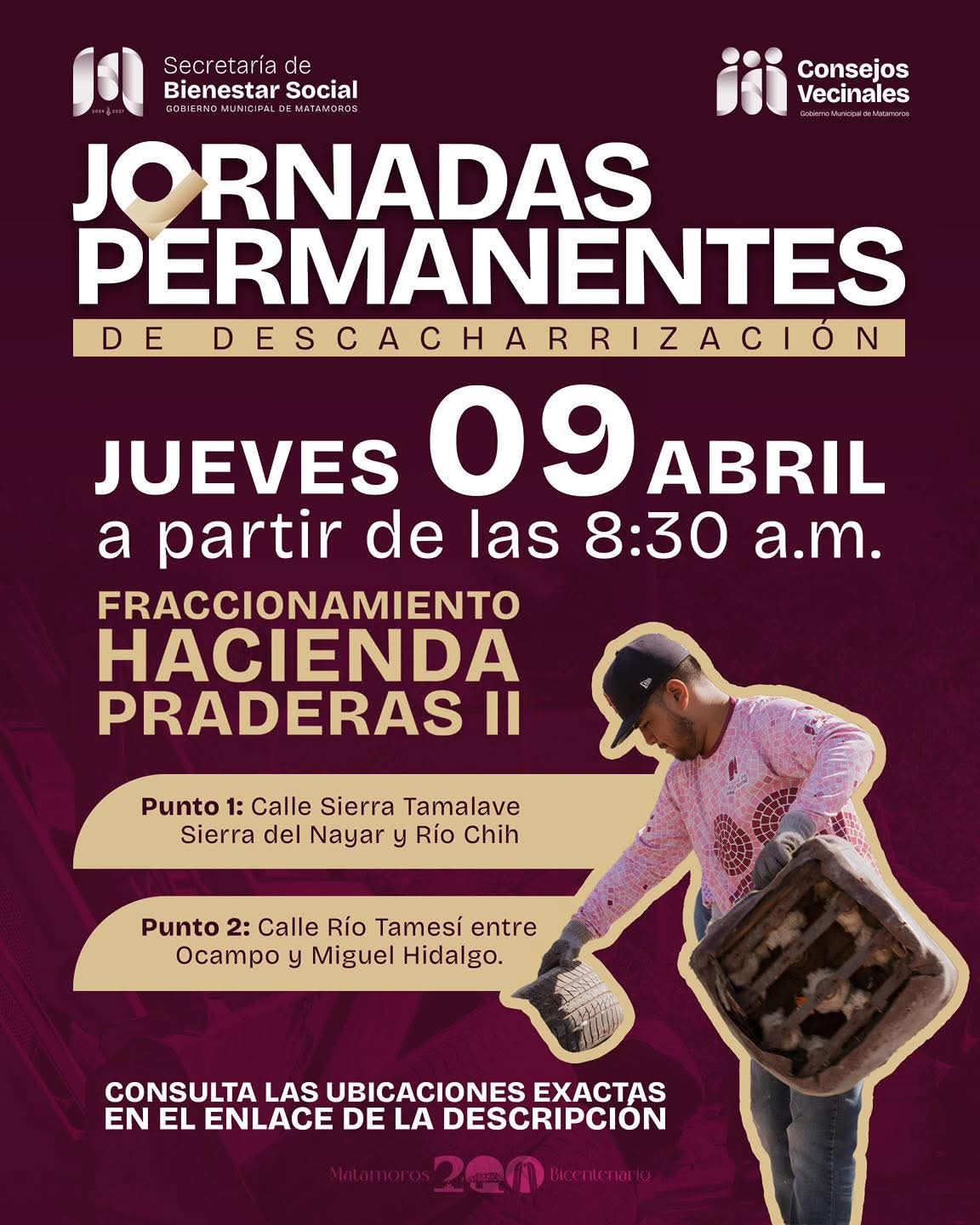 La jornada de descacharrización llegará al Fraccionamiento Hacienda Praderas II, facilitando la correcta disposición de objetos en desuso y reduciendo riesgos para la salud.