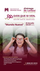 Este programa tiene como objetivo apoyar a niñas, niños, adolescentes, adultos y personas mayores que presenten dificultades visuales, brindándoles acceso a herramientas que les permitan mejorar su visión y, con ello, su calidad de vida, su desempeño académico, laboral y personal. La jornada se lleva a cabo hoy martes 1 de julio, a partir de las 9:00 de la mañana, en el Centro de Convenciones Mundo Nuevo, un espacio amplio y accesible para la atención digna de las personas que acudan.