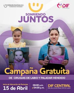 De acuerdo con los protocolos establecidos, las cirugías de labio y paladar hendido darán inicio el próximo 15 de abril, bajo la coordinación de la Asociación “Cambiando Sonrisas”.