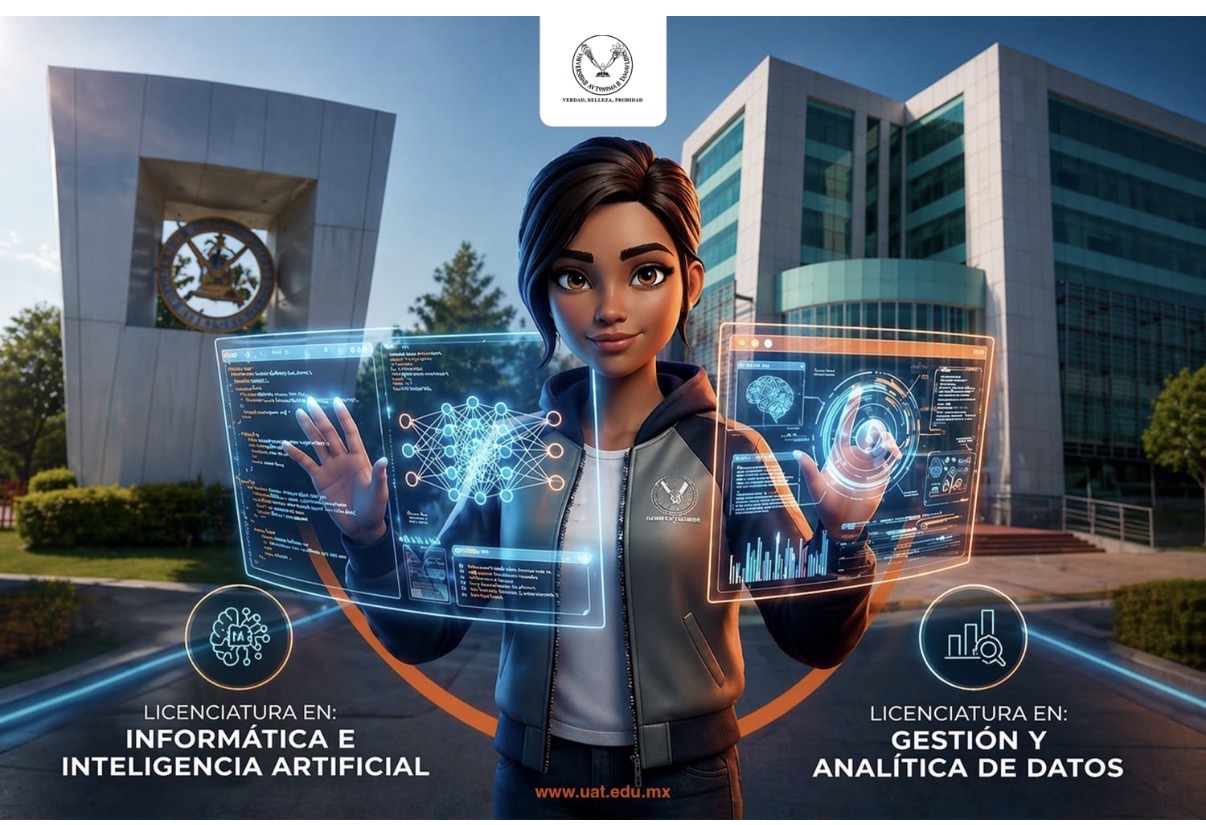 La Universidad Autónoma de Tamaulipas (UAT), bajo la administración del rector Dámaso Anaya Alvarado, incorpora a su oferta educativa dos nuevas carreras: la Licenciatura en Informática e Inteligencia Artificial y la Licenciatura en Gestión y Analítica de Datos, que iniciarán a partir del ciclo escolar de agosto-diciembre 2026.