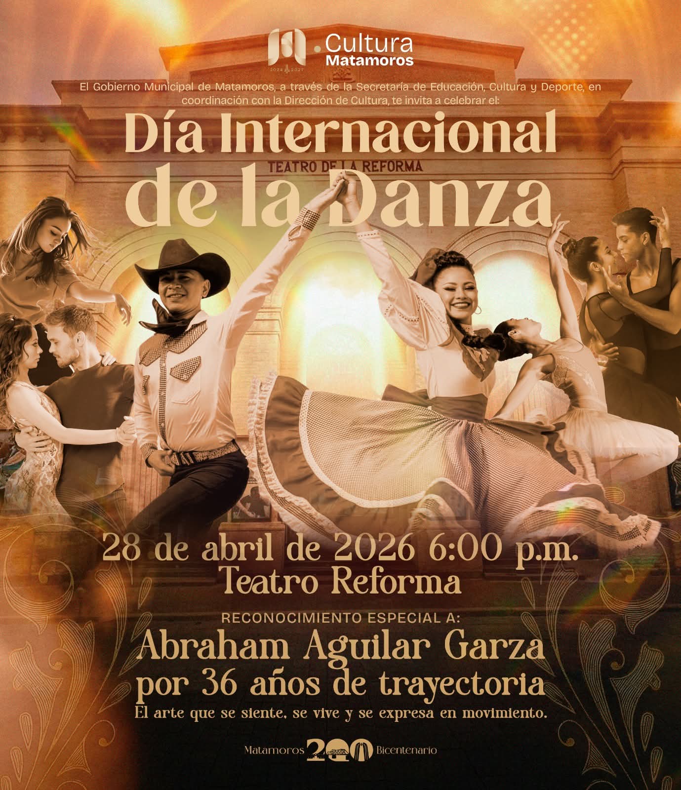 💃✨Matamoros celebrará el Día Internacional de la Danza con una tarde especial llena de talento, pasión y expresión artística en el emblemático Teatro de la Reforma, donde distintas disciplinas dancísticas se unirán para rendir homenaje a esta forma de arte que conecta emociones, cultura e identidad.