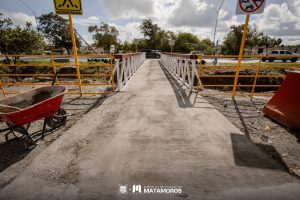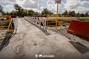 Matamoros, Tam.- Gobierno de Beto Granados informó que, tras los recientes acontecimientos, se llevó a cabo la reparación de los daños en el puente peatonal de la Colonia Obrera, con el objetivo de garantizar un cruce más seguro para las y los vecinos que diariamente utilizan esta infraestructura.